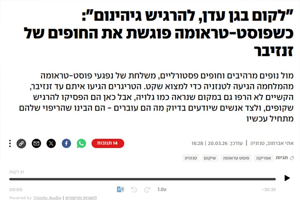 YNET - "לקום בגן עדן, להרגיש גיהינום": כשפוסט-טראומה פוגשת את החופים של זנזיבר