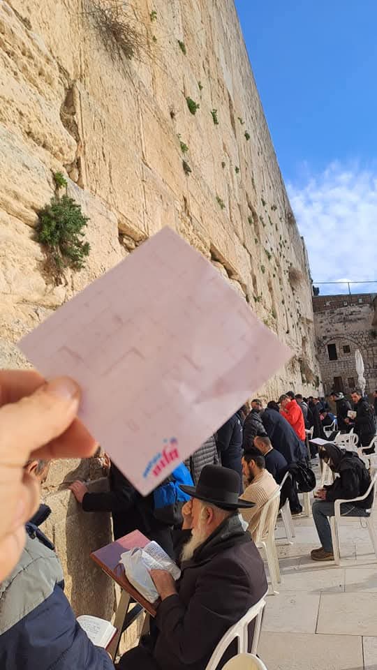 המשכנו לכותל המערבי שבו כל ילד שם פתק בכותל בבקשה אישית, ותפילה לשלום ובריאות כולם.
